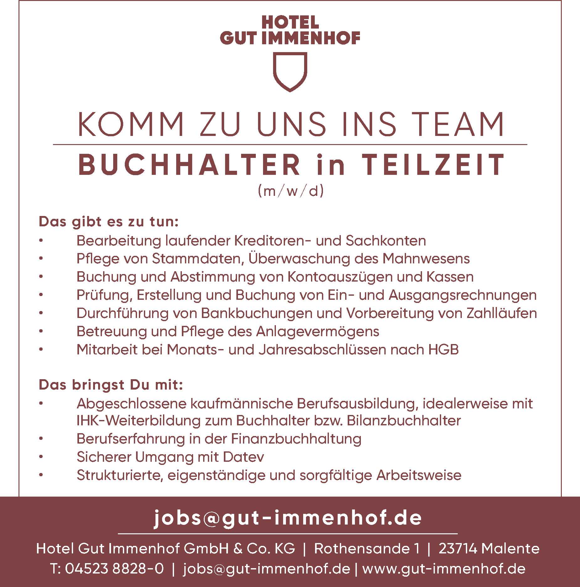 Stellenangebot BUCHHALTER (m/w/d) in Malente